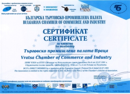 ТЪРГОВСКО-ПРОМИШЛЕНА ПАЛАТА - ВРАЦА е създадена през 1991 година като неправителствена, обществена универсална организация с нестопанска цел на деловите среди в региона на град Враца. През 2001 год. ТПП Враца е пререгистрирана като неправителствена организация в обществена полза по Закона за юридическите лица с нестопанска цел. Тя е част от Единната система на Българската търговско-промишлена палата. Мисията на Палатата е да съдейства за развитието на благоприятна икономическа среда за развитие на бизнеса и да улеснява неговата дейност. Търговско-промишлена палата – Враца се базира на принципите на доброволно участие и членство, автономност и самофинансиране. Ние работим в тясно сътрудничество с представители на местните власти и други неправителствени организации, както и с неправителствени организации и търговски палати в чужбина. Структурата на ТПП, с изградени регионални офиси в градовете Лом, Берковица и Ботевград, обединява над 1000 стопански субекта на територията на Врачанския регион, независимо от формата на собственост.