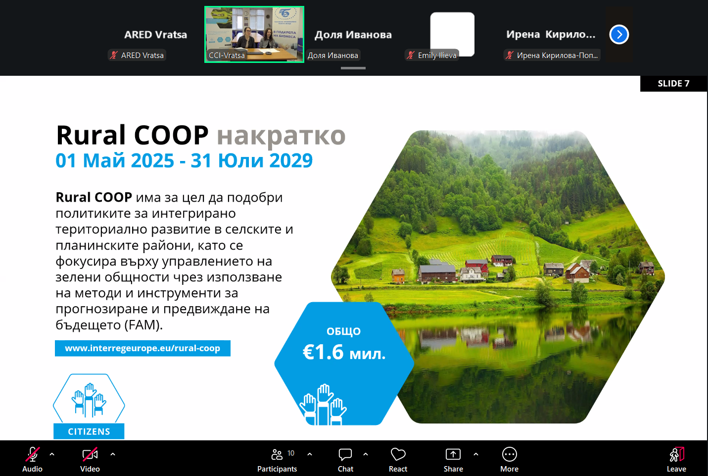 През март 2026 г. Търговско-промишлена палата – Враца (ТПП-Враца) организира две онлайн срещи на регионалната група заинтересовани страни в рамките на проект Rural COOP, финансиран по програма Interreg Europe.