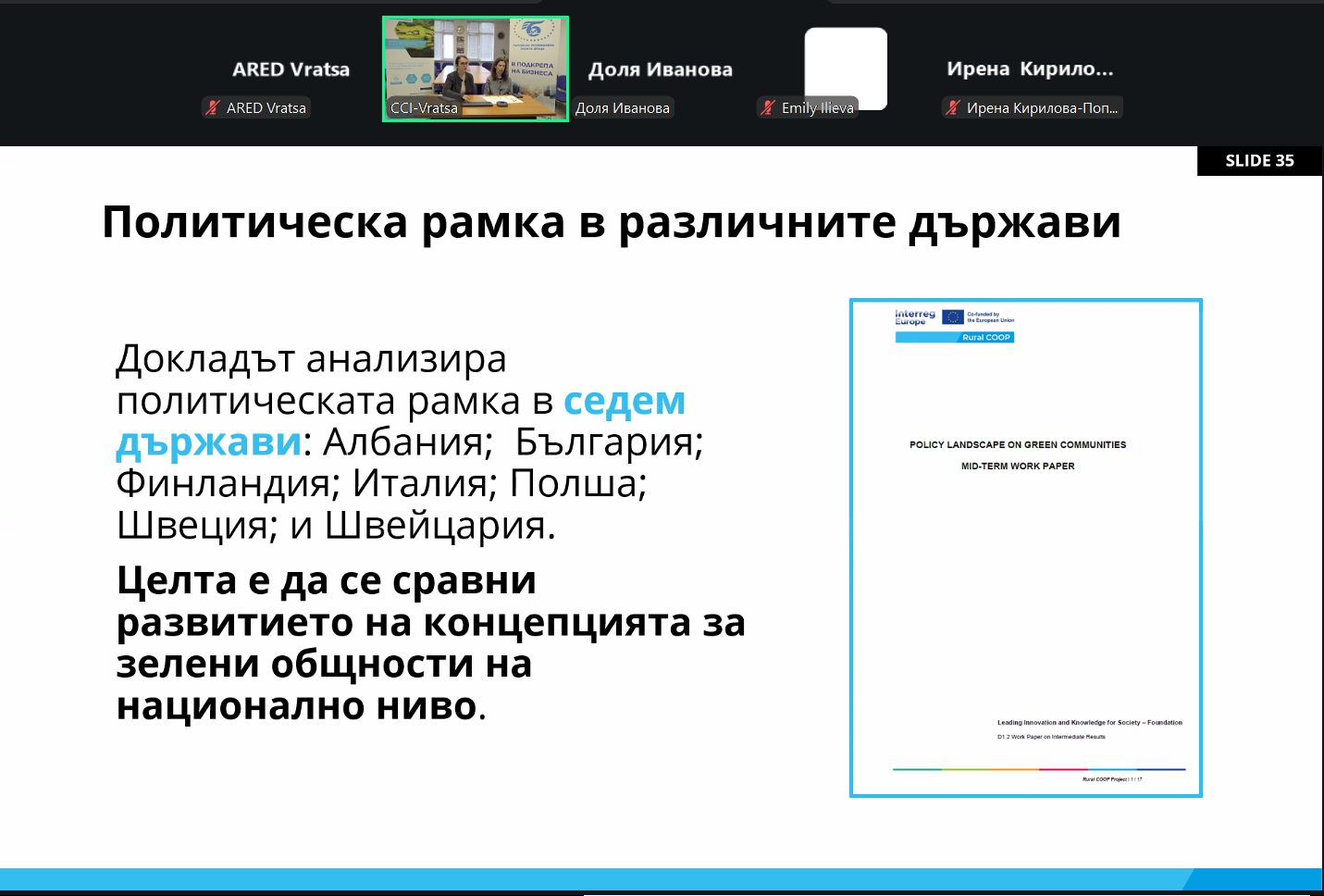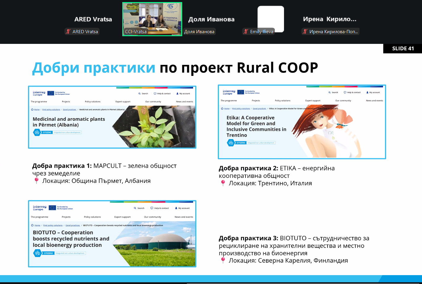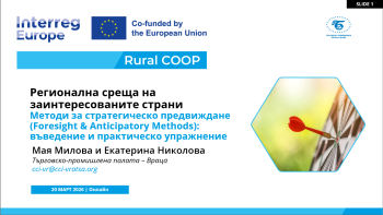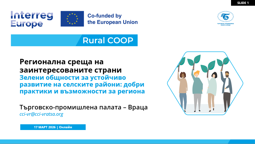 През март 2026 г. Търговско-промишлена палата – Враца (ТПП-Враца) организира две онлайн срещи на регионалната група заинтересовани страни в рамките на проект Rural COOP, финансиран по програма Interreg Europe.