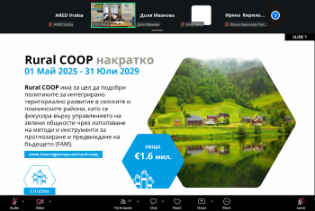 Проект Rural COOP има за цел да подобри политиките за развитие на слабо урбанизирани територии чрез прилагане на иновативни инструменти, насърчаване на партньорството и изграждане на капацитет на местно ниво.